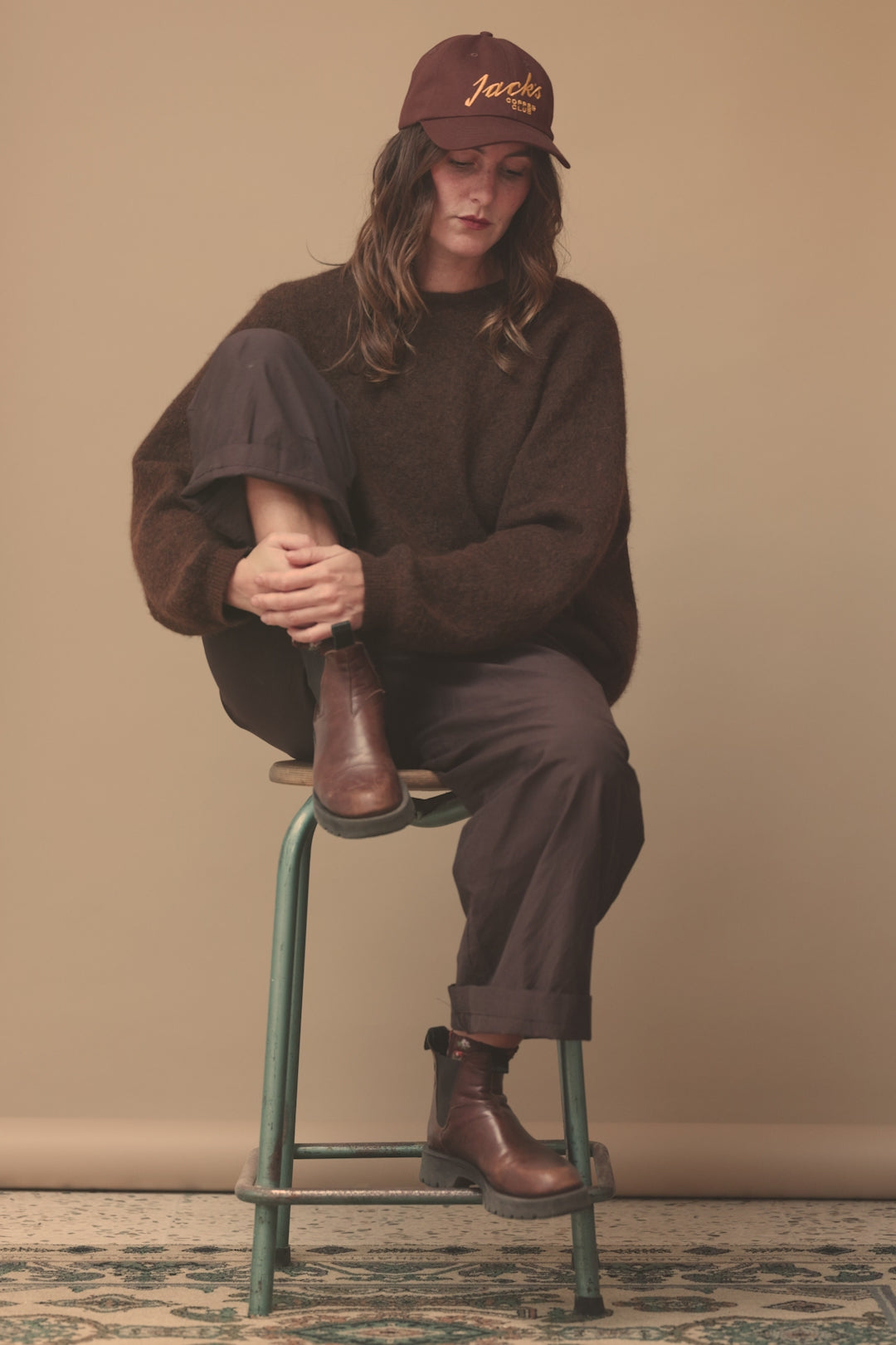 Coton épais, broderie jaune, coupe classique. Une casquette faite pour être portée longtemps, et avec tout.